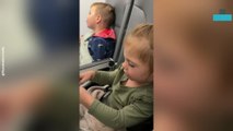 Sister Soothes Big Brother to Sleep on Her Lap During Flight