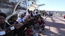 A Raqa en Syrie, un stade autrefois utilisé comme prison par le groupe jihadiste Etat islamique retrouve son usage initial : acceuillir les joueurs et supporters de l'équipe locale al-Rachid, qui jouait lundi contre l'équipe al-Sad de la ville voisine Tabqa. Ex-capitale de facto des jihadistes dans le nord, Raqa renoue avec un semblant de normalité depuis sa reconquête en octobre par une coalition de combattants kurdes et arabes soutenue par Washington. Durée: 01:22