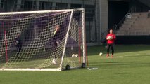 Günün tek çalışmasına ısınmaya yönelik koordinasyon hareketleriyle başlayan futbolcular, 5'e 2 top kapma oyununun ardından gruplar halinde orta ve şut çalışması yaptı.