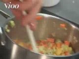 Déglacer avec le vinaigre, porter à ébullition, ajouter la coriandre et la cardamome.