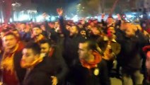 -cadde üzerinde tezahürat yapan taraftarlar
