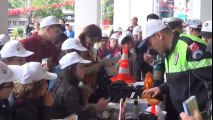 Zonguldak Vali Yardımcısı Bedrettin Sağsöz, tarafından Atatürk anıtına çelenk sunumuyla başlayan tören saygı duruşu ve İstiklal Marşının okunmasının sona erdi. Öğrencilere törenin ardından trafik polislerinin kullandığı materyaller tanıtıldı. “Emniyet kemeri takmayan sürücüleri uyardılar” Öğrenciler trafik ekipleri ile birlikte Gazipaşa Caddesi üzerinde emniyet kemeri takmayan araç sürücülerini uyardılar. (BD-OA-Y)