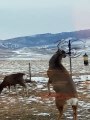 Ce cerf pique la bouffe des oiseaux...