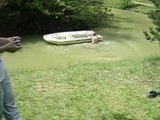 Il monte dans un bateau en marche