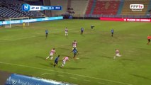 Belle action venue de la gauche mais la reprise de volée n'est pas cadrée