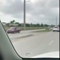 Une voiture tracte un bateau en feu