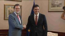 IMÁGENES DE LA LLEGADA DEL LÍDER DEL PSOE, PEDRO SÁNCHEZ, A LA MONCLOA, DONDE LO RECIBE EL PRESIDENTE DEL GOBIERNO, MARIANO RAJOY