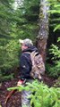 Un ours rencontre un chasseur dans un arbre