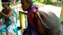 This pensioner has an enormous growth on his back as big as a sack of potatoes - which he has been carrying round for 40 YEARS. Hesus Demata, 76, first noticed the a tiny lump the size of an olive just below his neck in 1978. But the married father-of-four said he did not go to the doctors because there was no pain and he was afraid of large medical bills.