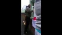 Gang leave flag and bacon outside mosque during prayer time (720p Full HD)