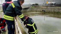 Dereye düşen kedi böyle kurtarıldı