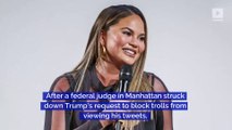 Chrissy Teigen Will Continue to Troll President Trump After a federal judge in Manhattan struck down Trump’s request to block trolls from viewing his tweets, Teigen took to Twitter to remind the POTUS what the First Amendment means. Tweet President Trump blocked the supermodel last year following her politically-charged tweets at him. He has also blocked author Stephen King and comedian Rosie O’Donnell.