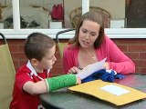 Young Shropshire football fanatic Jamie Thomas is sure to remember his first match watching his sporting heroes -- because Wayne Rooney broke his wrist. The nine-year-old from Wem, Shropshire was watching Manchester United for the first time when a stray shot from the £250,000-a-week striker caught his arm and left him needing hospital treatment. Jamie, who attends St Peter's Primary School, broke his wrist after trying to block Rooney's wayward thunderbolt in the warm up before their game with Wolves at Molineux on Sunday. It left Jamie, who was sat on the front row of the Jack Harris Stand, missing most of the second half as he was being treated by first aiders. Rooney is not believed to have been aware of the incident.