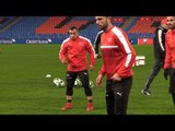 Northern Ireland train ahead of their World Cup qualifier against Switzerland. Players include Kyle Lafferty, Paul Patton, Niall McGinn, Steven Davis, Johnny Evans and Conor McLaughlin.