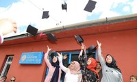 Erzurum'un Oltu ilçesinde Gökçedere İlk ve Ortaokulu'nda mezun olan öğrenciler, öğretmenlerinin de yardımıyla yaptıkları karton keplerini büyük umutlarla havaya attı.
