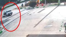 Tayland'da direksiyon başında uyuyan adamın kontrolünü kaybederek aracın camından dışarıya fırladığı anlar, başka bir aracın yol kamerası tarafından saniye saniye görüntülendi.