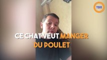 Ce chat veut manger du poulet