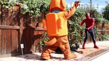 Frozen Elsa & Spiderman vs GIANT BALLOON EXPLOSION! w/ The Witch & Big Bad Wolf in Real Li