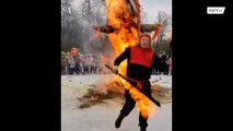 In the video, filmed in southern China's Fujian Province on June 20, the woman's handbag suddenly bursts into a ball of flames while she sits at the back of a bus in Zhangzhou City.
