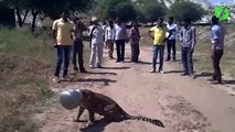 Sauvetage d'un jaguar qui a la tête coincée dans un pot
