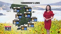 Take care of yourselves by drinking lots of water and staying in the shade during the day because Seoul will mark 30 degrees, and it'll be even hotter in Gwangju and Daegu at 33 and 32 degrees.