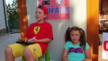 ! Its such a great children play area with Go Karts and many Kiddie Rides like Train Rides! Theres also many Video Arcades games like Ninja Fruits and Dog Ball Pits! Kids can even play Mini Golf there! You can trade in your tickets for awesome prizes and toys! Ryan picked candy and a toy sword! Great kids video who loves to play fun games and race cars!