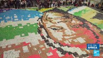 South Africa marks 100 years since Nelson Mandela's birth, among the many tributes to the late anti-apartheid icon is a giant mosaic made out cans in Cape Town.