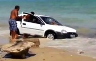 Angry Dad Stops Car From Driving On Beach Where Kids Play