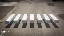 Après une expérimentation dans plusieurs pays, dont l'Inde et la Belgique, les passages piétons en 3D débarquent à Paris. Plutôt que de voir des bandes blanches sur la route, ceux-ci donnent l'illusion de voir des blocs de béton grâce à l'alternance du noir, du gris et du blanc. L'effet d'optique est saisissant à un peu plus de 2 mètres de distance. Quels en sont les enjeux ? Quid des voitures autonomes ? - Good Morning Business, du jeudi 26 juillet 2018, sur BFM Business.
