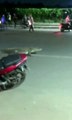 Residents chased away the reptile which took refuge in a nearby stream before reinforcements arrived to drag the beast into the open.