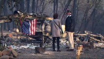 He gets out of his car briefly at a mobile home park, surveying the debris and charred vehicles on the land.