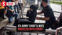 Ex-Army chief's wife gets wheelchair assistance upon arrival at court