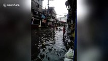 A Dramatic footage shows water cascading over the side of mountains after a storm drain overflowed following heavy rain in the Philippines. The powerful torrent of water came from a small village on the hills of San Mateo in Rizal, Philippines on August 12. Residents had to flee for their lives after their homes were hit by the deluge, which had spilled over from the hamlet's storm drainage system.