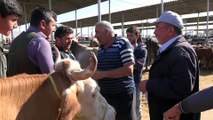 Kurban fiyatlarının geçen sene ile aynı olduğunu belirten besiciler, pazara getirdikleri kurbanlıklar için müşteri bekledi.