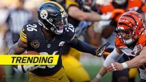 Minnesota Vikings running back Mike Boone throws Jacksonville Jaguars cornerback Quenton Meeks to the ground on a 9-yard run.