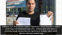 ( SİVAS -ÖZEL-HD)- Sivas'ta kulağına sinek girdiği için zarı delik kulağına alkol dökerek işitme kaybına neden olan doktora dava açan beden eğitimi öğretmeni Sedat Bayiskit (29) bir şok da gelen mahkeme kararıyla yaşadı. Mahkeme alkol yüzünden sağır olan öğretmenin tüm avukatlık giderlerini karşılamasını talep etti SİVAS