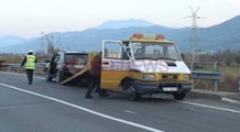 Sipas informacioneve të policisë mësohet se autoveturës i është shpuar goma, ndërsa kamionit i është çarë depozita e karburantit.