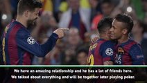 Réunis à Barcelone à l'occasion d'un tournoi de poker, les deux anciens coéquipiers Gerard Pique et Neymar ont pris du bon temps ensemble. Entre fous rire et paire d'as, le défenseur catalan et l'attaquant brésilien du PSG n'ont pas mis longtemps à retrouver leurs automatismes hors du terrain, mais à la même table...
