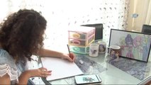 ( İZMİR -ÖZEL) - Sol ayağıyla hayata tutunan ünlü yazar gibi o da sol eliyle hayata tutundu - Yüzde 96 engelli Doğa, sol eliyle resim çiziyor - Doğa Taşar, kupa bardaklar üreten bir firmaya tasarımlar yapıyor İZMİR