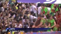 Como cada año, la tradicional Tomatina volvió a pintar de rojo las calles del pueblo español de Buñol. VERSION SUBTITULADA