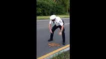 A policeman was dragged on a car’s bonnet for 5km in eastern China’s Shandong province when he tried to stop a drunk driver.