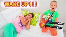 Vlad and Nikita pretend play music and wake up Mom