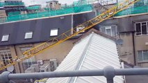 Officials say a crane collapsed onto a house in a Florida neighborhood, tearing a large gash in its roof.