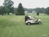 Guy Fails at Performing Pole Bending Stunt on Golf Cart