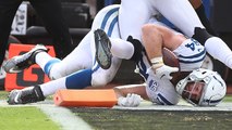 Indianapolis Colts quarterback Andrew Luck throws a short pass to tight end Jack Doyle for a 9-yard reception in the red zone.