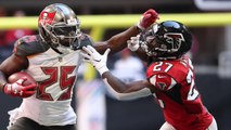 Atlanta Falcons running back Tevin Coleman pulls off a great juke as he cuts away from Carolina Panthers cornerback Donte Jackson and runs for 36 yards.