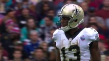 Carolina Panthers rookie receiver DJ Moore escapes multiple Falcons defenders for his first NFL touchdown in Week 2 of the 2018 season.