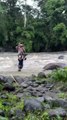 Young Boy's Daily Struggle: Carrying Grandma Across the Raging River on a DIY Zipline