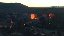 - Türkiye’nin önemli turizm merkezlerinden Kapadokya bölgesinde sabahın erken saatlerinde havalanan sıcak hava balon turları bölgeyi ziyarete gelen yerli ve yabancı turistleri mest ediyor. Türkiye’nin önemli turizm merkezlerinden Kapadokya’da günün ağarmasıyla başlayan sıcak hava balon turları bölgeyi ziyarete gelen yerli ve yabancı turistleri mest ediyor. Sabahın erken saatlerinde Kapadokya bölgesini kuş bakışı izlemenin mutluluğunu sıcak hava balon turlarına katılarak yerden yaklaşık bin 500 metre yükseklikten izleyen turistler eşsiz manzara karşısında mest olurken peribacaları ile birlikte sıcak hava balonlarını ölümsüzleştirmek isteyen bazı turistler de Göreme’de bulunan aşıklar tepesinde bu anları ölümsüzleştiriyor. Sabahın erken saatlerinde Göreme’de bulunan aşıklar tepesinde buluşan yüzlerce turist, peribacaları ile birlikte balonların eşsiz manzarası karşısında adeta gizeme kapılırken bazı turistler ise yanlarında getirmiş oldukları eşyalardan kendilerine dekor yaparak peribacaları ve balonları adeta bir stüdyo havası vererek fotoğraf çektiriyor. Sabahın ilk ışıklarıyla birlikte sıcak hava balon turlarını izlemek için aşıklar tepesinde bulunan yerli ve yabancı turistler; peribacaları ve sıcak hava balonlarının birleşmesinden dolayı etkilendiklerini ifade ederek Kapadokya’ya aşık olduklarını ifade etti.