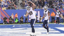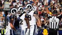 Los Angeles Rams quarterback Jared Goff zips a 6-yard touchdown pass to wide receiver Robert Woods for the second time in the game.